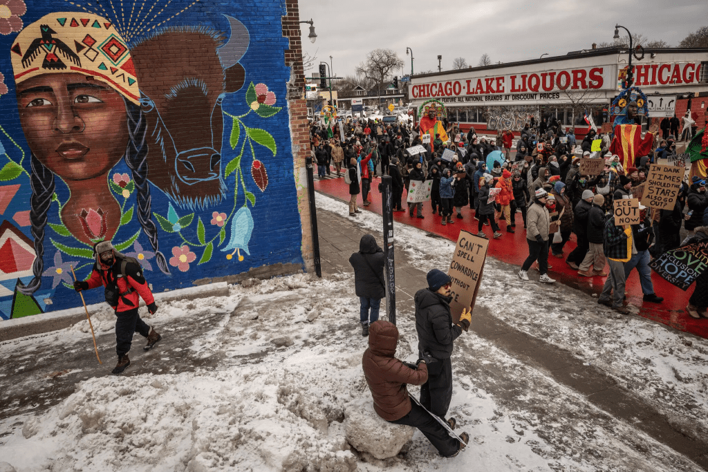 在明尼阿波利斯,抗议情绪最为集中。报道称,周六下午示威者队伍从Powderhorn Park出发,步行前往贯穿多个移民社区的Lake Street,队伍绵延数个街区。当地警方表示为应对计划中的大规模抗议,取消休假并动员警力;市长Frey一方面批评联邦执法行动带来的混乱,另一方面也呼吁示威者保持和平,避免出现破坏与冲突。