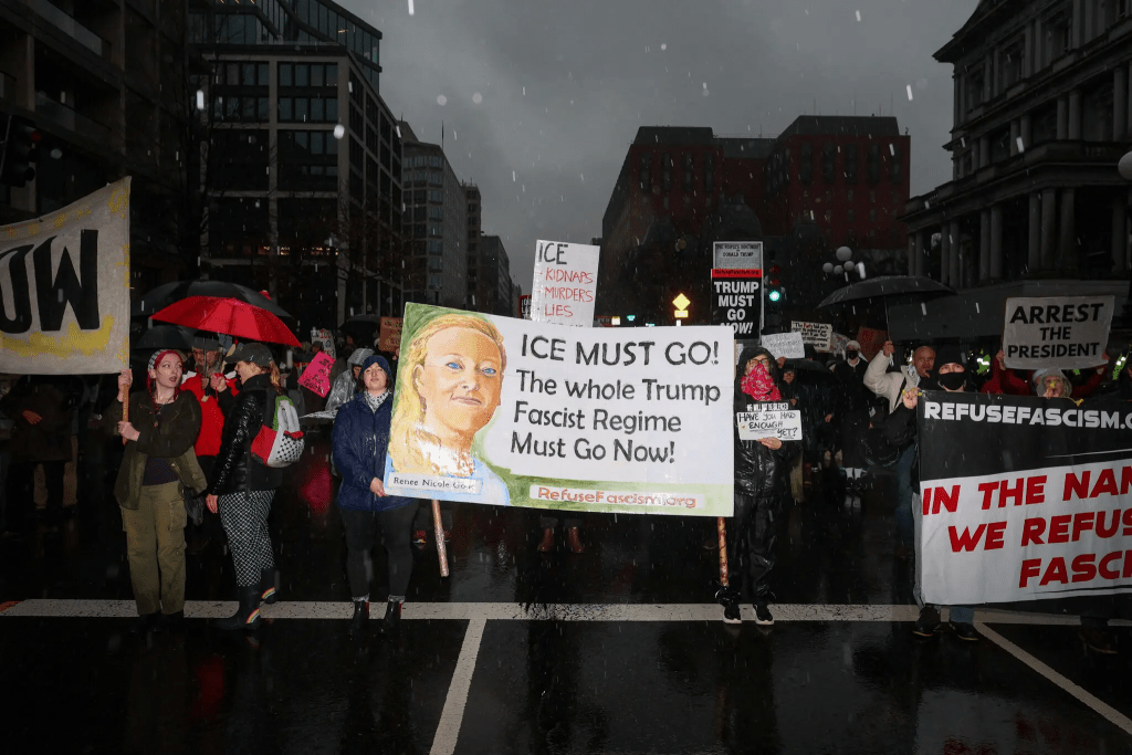 在首都华盛顿特区,示威者在白宫外的雨中集会,高喊“ICE Out for Good”等口号,并举起印有遇难者形象的标语;一位来自弗吉尼亚的医生谈到,事件中旁观者医疗救助受阻的细节让她感到“难以接受”。