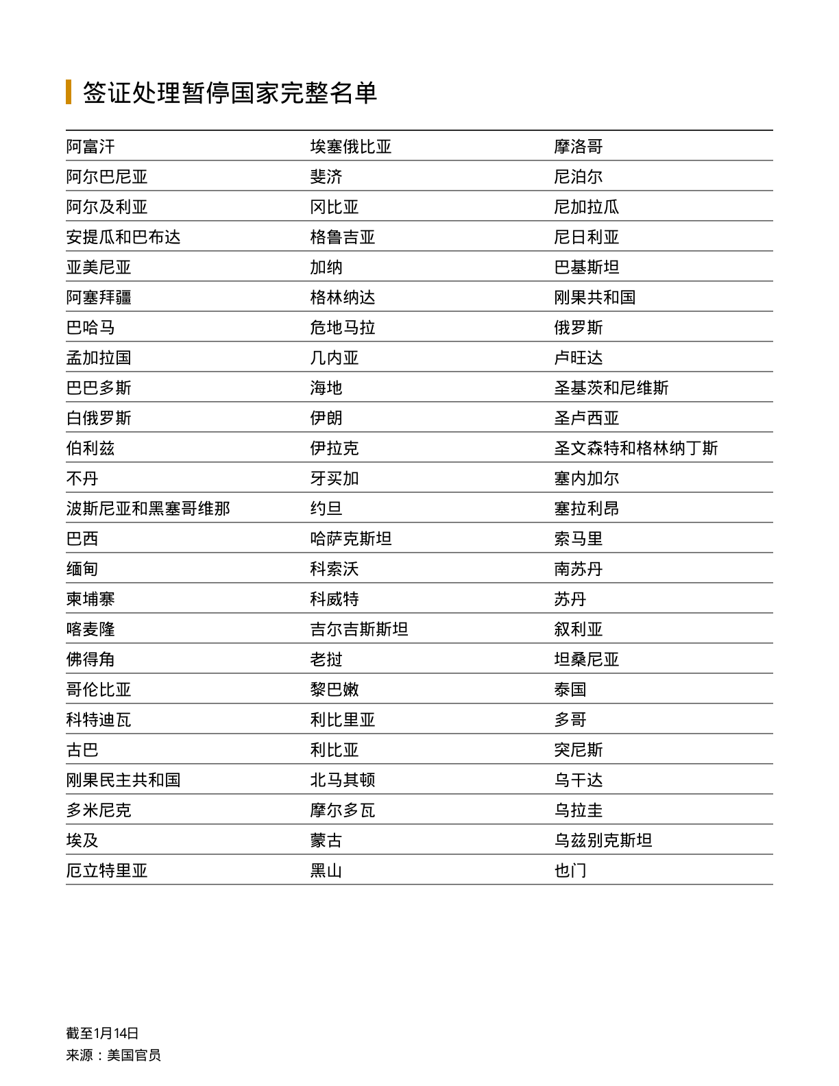 据《华盛顿邮报》报道,特朗普政府正无限期暂停对来自75个国家的移民签证(immigrant visa)办理程序,涉及巴西、伊朗、俄罗斯、索马里等国,这被视为白宫近期收紧合法移民通道的最新举措。目前,国务院尚未对外发布完整名单,《华盛顿邮报》依据一名美国官员提供的信息,已整理出截至1月14日的暂停国家列表,暂不包含中国。