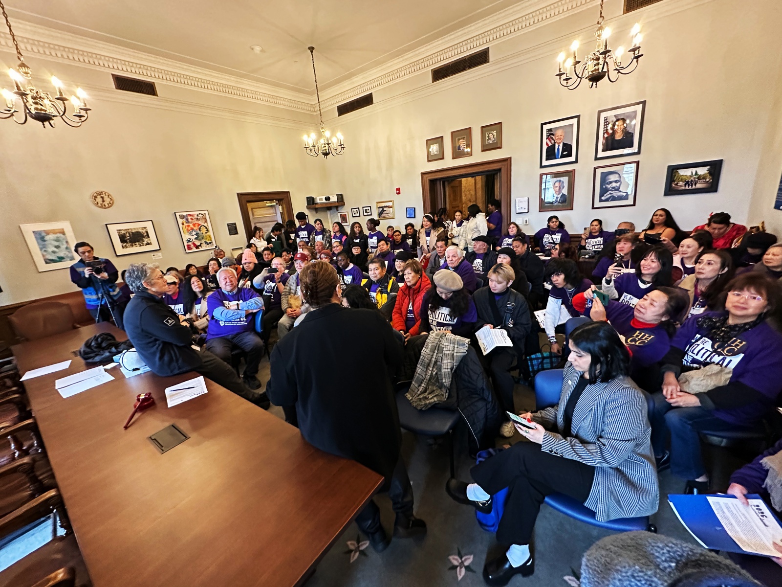 在州参议员T’wina Nobles办公室,一组倡导者们向工作人员详细介绍了今年亚太裔社区关注的立法重心。