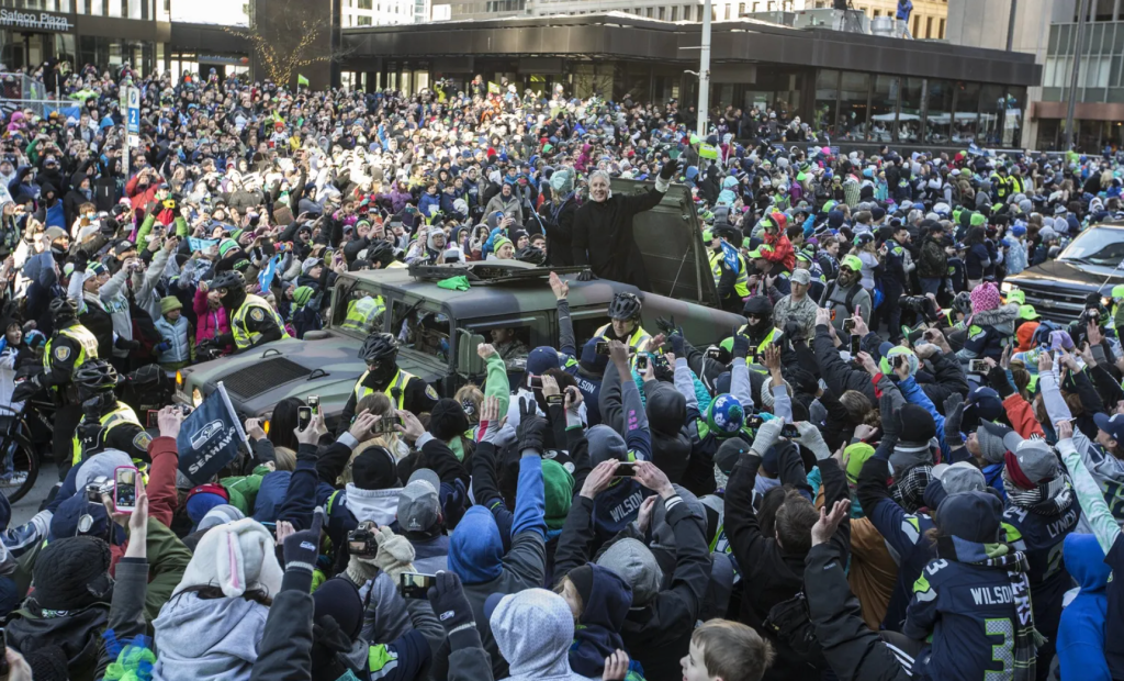 此外,根据2014年海鹰队夺冠游行的经验,当天早上6点30分起,就已经有人群陆续来到市中心,抢占一个游行道路旁的好位置,想要近距离观看球队和奖杯的球迷,务必记得早起。