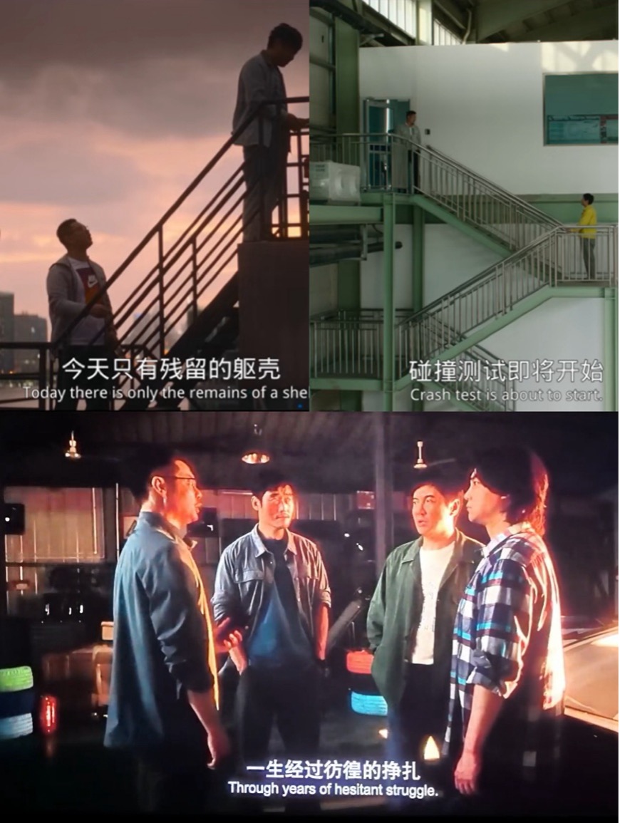 到了第二部,两个人的车队是竞争关系,这个场景再次呼应,两个人仍然站在楼梯上,只是高度对调了,很微妙。