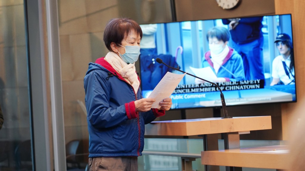 前西雅图市议员、社区领袖胡清雅动情地对议员们说:“今天我带着中国城的长者们来到这里,他们冒雨步行至此,是因为他们觉得这件事太重要了。请听听他们的声音,给予长者们应有的尊重。”