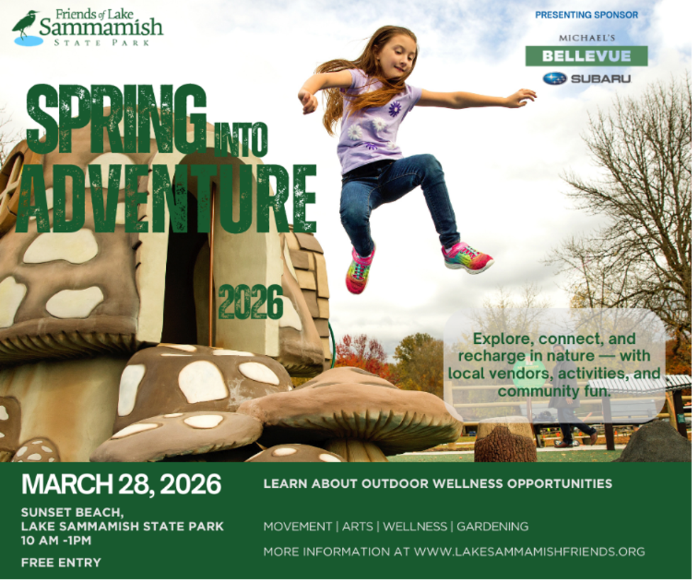 亮点:在美丽的Sammamish湖畔边迎接春天!活动包括3公里散步、儿童瑜伽、森林浴、彩铅笔画课、40+户外开拓商展、美食车等。活动免费对公众开放,部分课程可花$5报名参加。停车需Discover Pass或缴纳$10停车费。