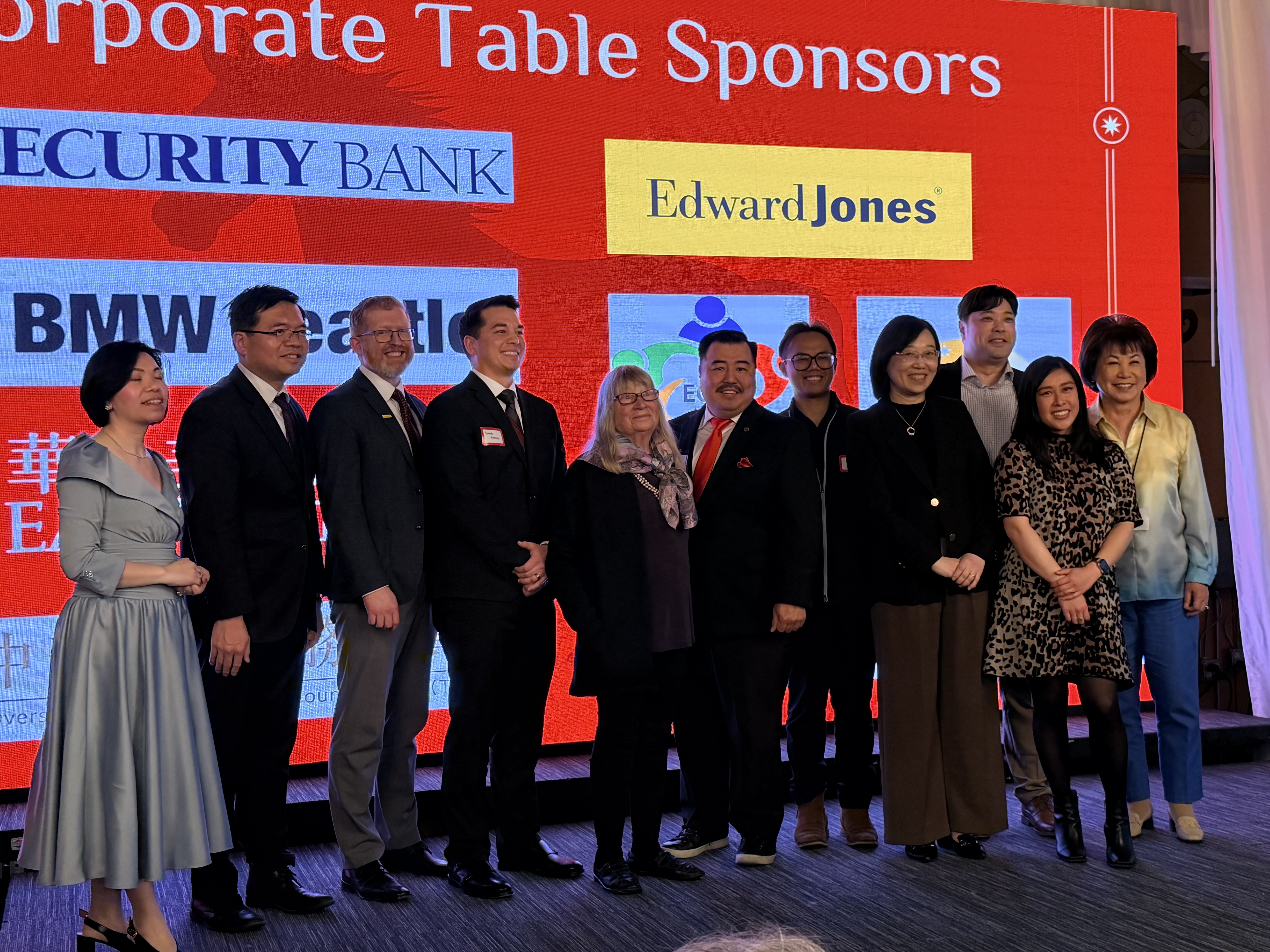 本次春宴还吸引了多个族裔商会与社区组织参与,包括ECCC、Greater Seattle Korean Association等。这种跨族裔、多文化的参与格局,成为当晚一大亮点。来自不同背景的组织在同一平台上交流互动,体现了西雅图作为多元文化城市的独特魅力,也展示了各族群在经济与社会层面的深度融合。