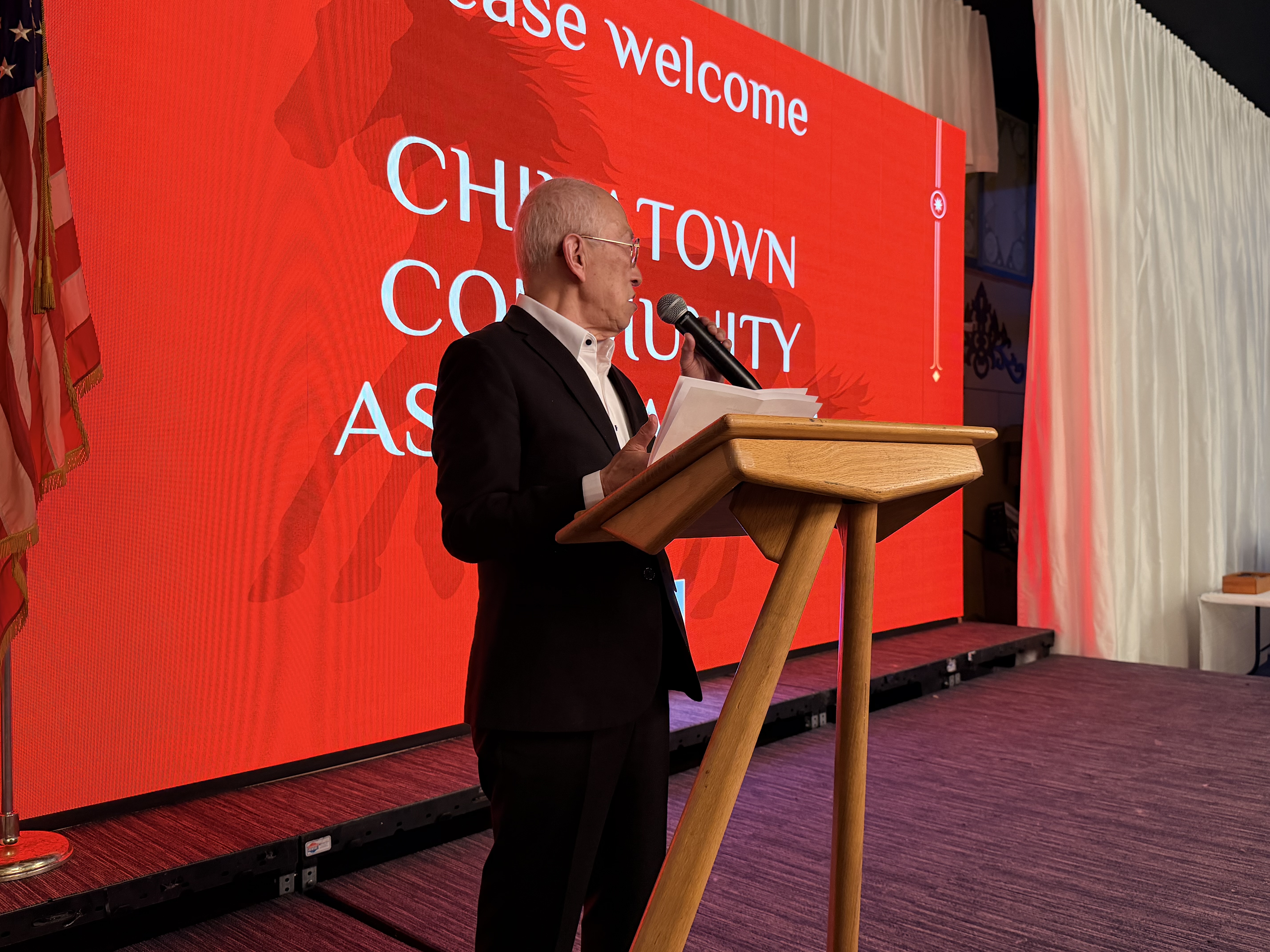 西雅图中华商会会长TC Lo回顾了过去一年的发展。他指出,尽管当前经济环境存在不确定性,包括通货膨胀、裁员等压力,但社区成员依然选择相互支持,共同参与活动,这种凝聚力尤为珍贵。他强调,科技的发展无法取代人与人之间的真实联系,真正推动社会与商业发展的,仍然是人与人之间的信任与合作。